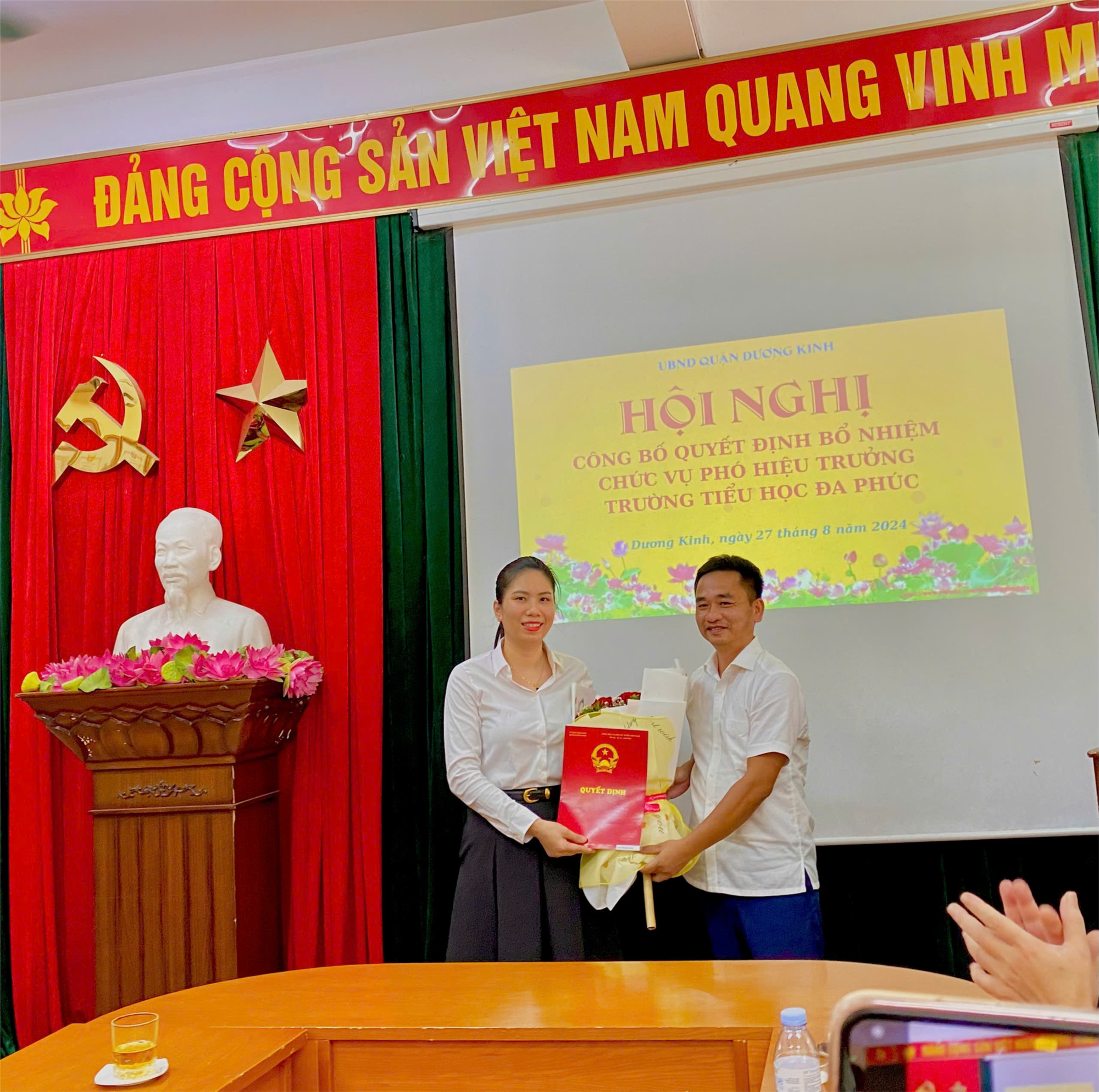 Chiều ngày 27/8/2024, UBND quận Dương Kinh tổ chức Hội nghị công bố Quyết định bổ nhiệm chức vụ Phó Hiệu trưởng trường Tiểu học Đa Phúc.