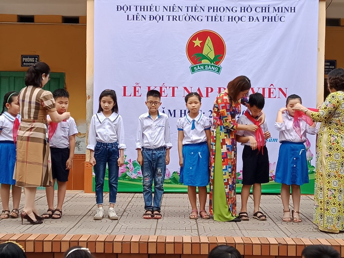 Đứng trước cờ tổ quốc, cờ Đội các bạn đội viên mới đã cùng nhau hô vang lời hứa của người đội viên khi vinh dự được đứng vào hàng ngũ của Đội Thiếu niên Tiền phong Hồ Chí Minh, đồng thời các bạn Đội viên mới được tự tay thắt khăn quàng trên vai theo đúng nghi thức Đội.