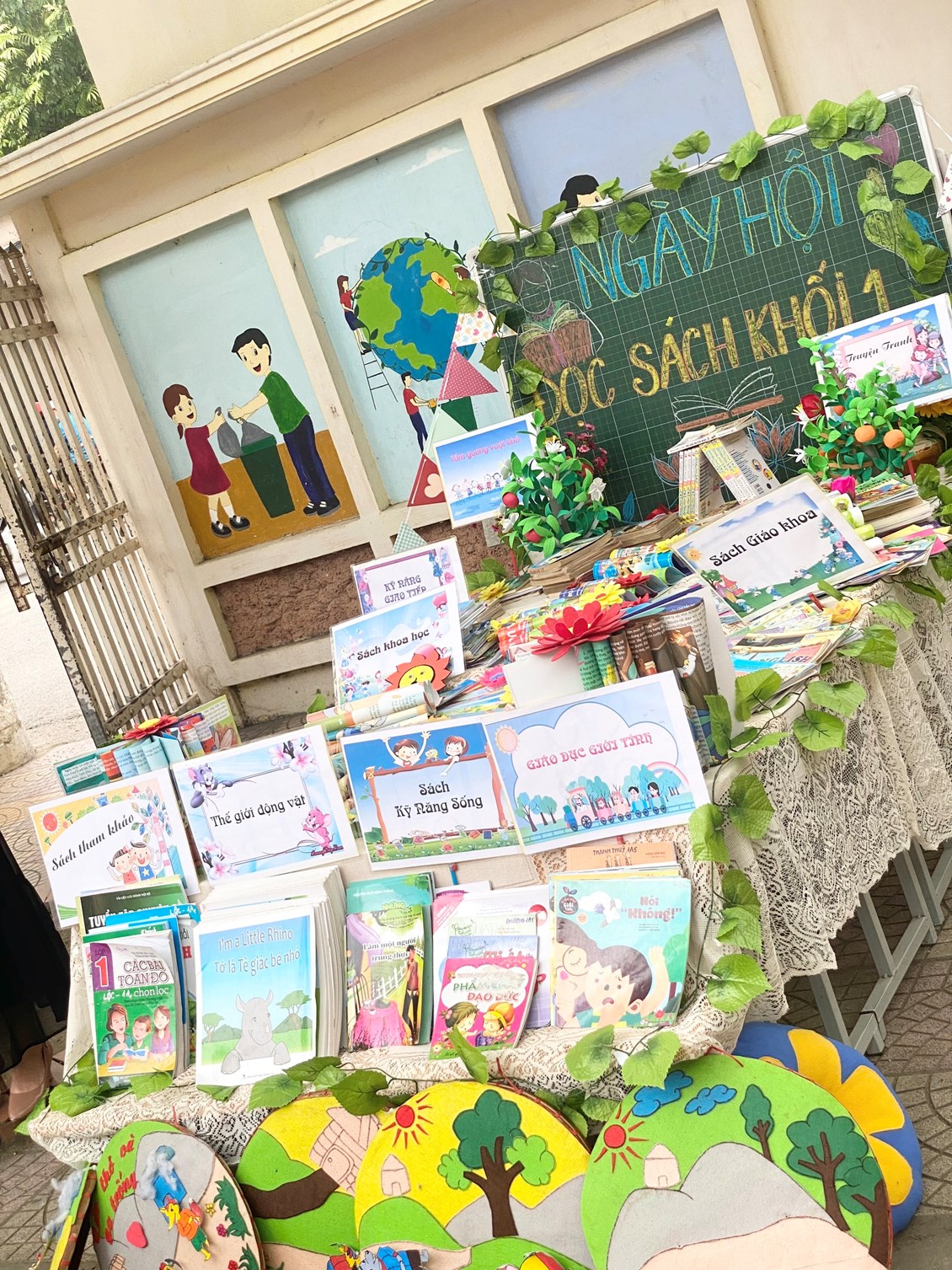 Trong khuôn khổ của ngày hội, các em học sinh cùng tham gia hoạt động với các nôi dung gồm: Vui văn nghệ, Kể chuyện theo sách, Triển lãm các gian trưng bày sách,..Ở mỗi nội dung đều được chuẩn bị kỹ lưỡng, hình thức trang trí, thiết kế đẹp mắt và nội dung phong phú, hấp dẫn. Đặc biệt khu trưng bày sách đã thể hiện được tình yêu sách với việc sắp xếp bố trí sách một cách thẩm mỹ, trang trọng với nhiều đầu sách quý về tự nhiên, xã hội; kĩ năng sống, Biển đảo Hoàng Sa, Truờng Sa, đặc biệt là những cuốn sách về Bác Hồ kính yêu.
