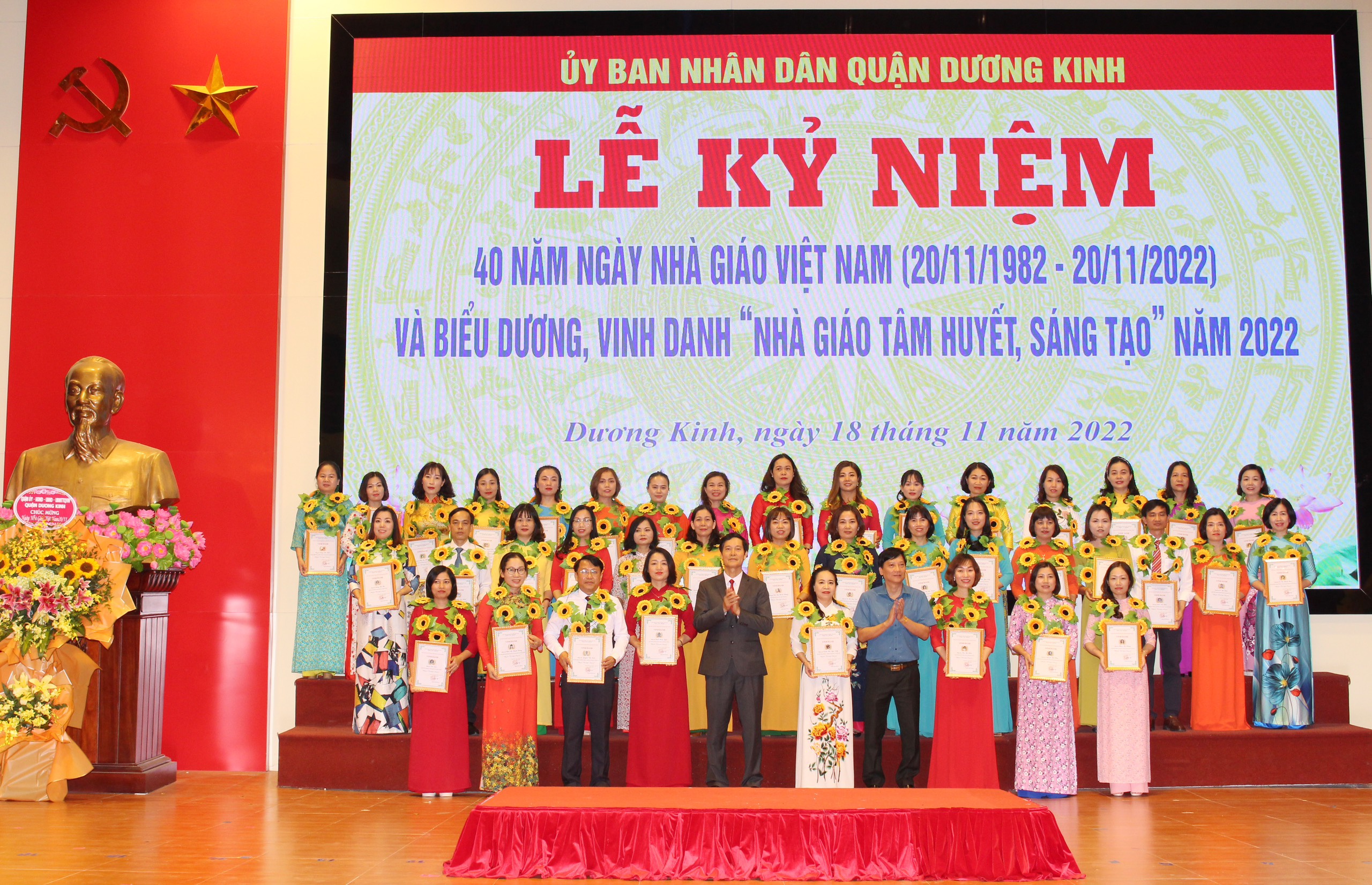 Chiều ngày 18/11, Phòng Giáo dục và Đào tạo quận Dương Kinh tổ chức Lễ Kỷ niệm 40 năm ngày Nhà giáo Việt Nam. Trường Tiểu học Đa Phúc rất vinh dự có 2 Nhà giáo được biểu dương, vinh danh “ Nhà giáo tâm huyết, sáng tạo” : Nhà giáo Hoàng Thị Thanh Nga - PHT ; Nhà giáo Nguyễn Thị Thuyết